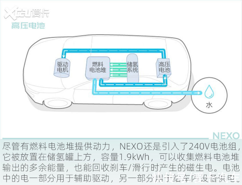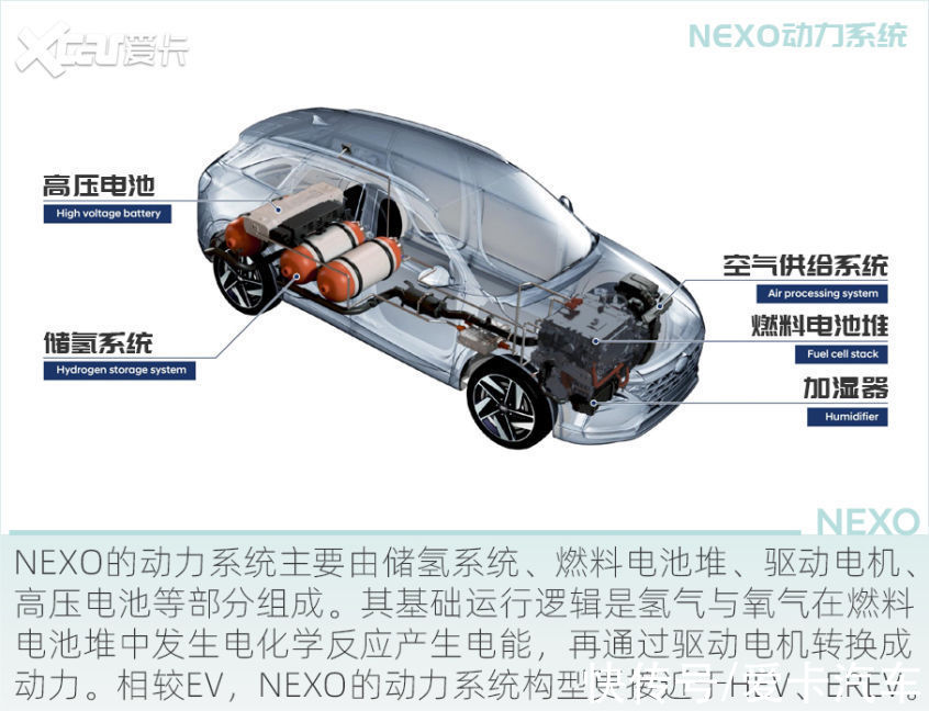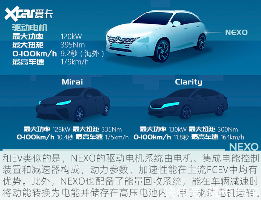 氢燃料电池车,变的是能源形式,不变的是驱动方式。NEXO搭载一台前置电机,最大功率120kW(163马力),最大扭矩395Nm,参数水平相当于一辆20万元左右的电动车。