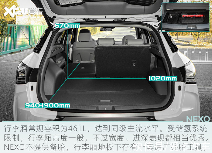 NEXO定位中型SUV,但是它的参数更接近常见的紧凑型SUV,得益于优化后的储氢系统,车内空间未被侵占太多,比Mirai、Clarity宽敞是显而易见的。乘坐、储物空间体验部分本文不再赘述,想了解的朋友可以参考此前的试驾文章:试驾现代NEXO 这也许是新能源的未来!