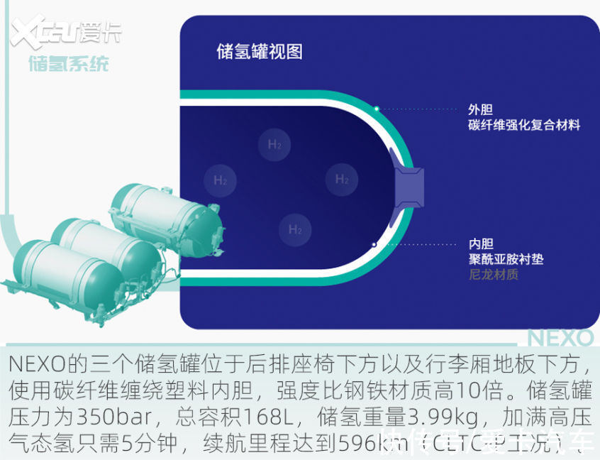 与海外版相比,NEXO中国版的动力系统基本保持不变,两者最大的区别在于中国版为了适应法规,将储氢罐压力从700bar降至350bar。