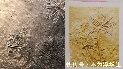 (海百合图片和美术书配图对比 左:海百合化石 右:教材中图片)
